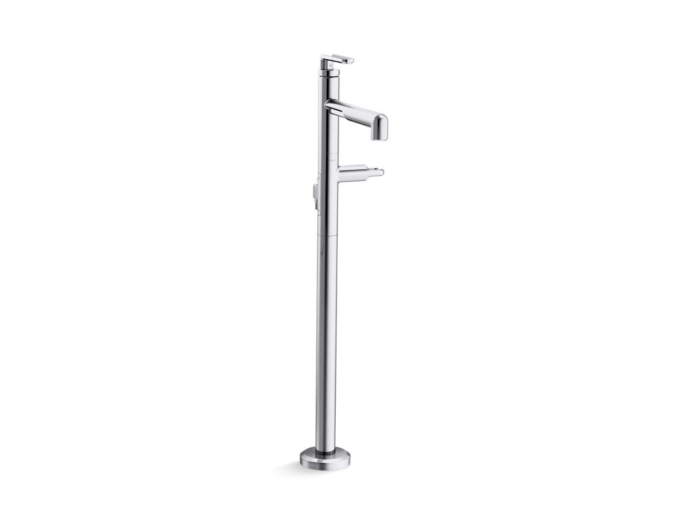 Vice introduces a range of bathroom configurations defined by exposed mechanical detailing, including hex-head screws, chamfered edges, and recessed fastener seats. Highlighting elements typically reserved for fine instruments, Vice’s custom-insert geometry ensures perfect alignment across its spouts and handles, reinforcing the collection’s transitional identity. With a sculptural form, the Vice freestanding bath faucet transforms the bathroom into a statement. Pair it with a Kallista handshower for a seamless bathing experience. The optional tray with arm (sold separately) is designed to provide a convenient spot to hold a beverage or bath accessories and hang a towel below.