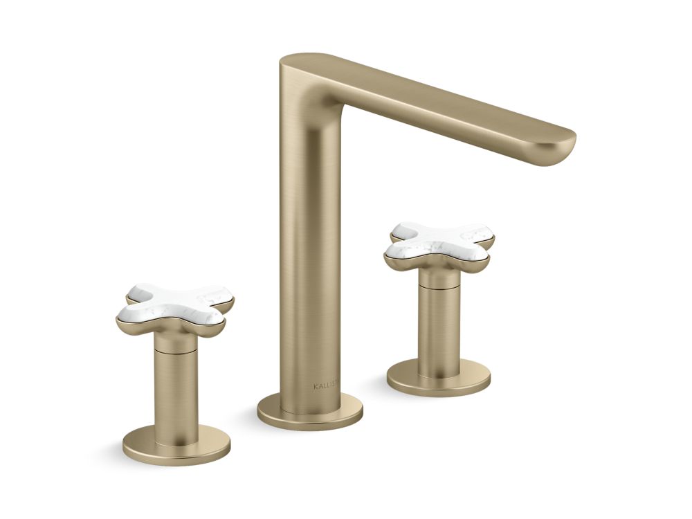 American contemporary form is embodied in the streamlined simplicity of the 002™ brassware collection, starring organic round edges and uninterrupted clean lines. This premium deck-mount bath faucet with upgraded cross handles will elevate your contemporary or transitional bathroom setting in both design and innovation. With a custom-engineered aerator, the user will experience a unique, artistic and splash-free water stream. Adorned with jewelry inspired handles featuring exquisite hand-crafted Italian Statuary White Carrara, one of three meticulously curated natural stone offerings, and the availability in five luxurious finishes, the 002™ bathroom collection allows you to create a faucet pairing that suits your personal style.- High-quality metal construction for durability and reliability