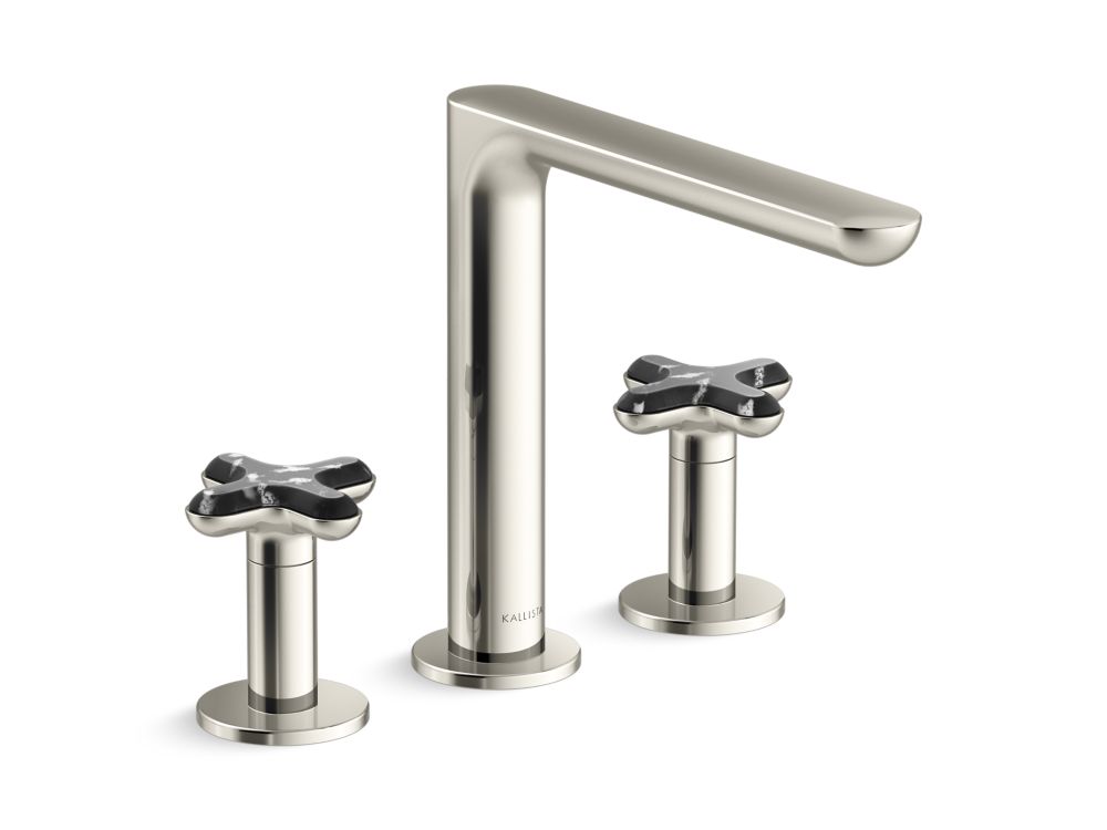 American contemporary form is embodied in the streamlined simplicity of the 002™ brassware collection, starring organic round edges and uninterrupted clean lines. This premium deck-mount bath faucet with upgraded cross handles will elevate your contemporary or transitional bathroom setting in both design and innovation. With a custom-engineered aerator, the user will experience a unique, artistic and splash-free water stream. Adorned with jewelry inspired handles featuring exquisite hand-crafted Italian Zebra Jasper, one of three meticulously curated natural stone offerings, and the availability in five luxurious finishes, the 002™ bathroom collection allows you to create a faucet pairing that suits your personal style.- High-quality metal construction for durability and reliability