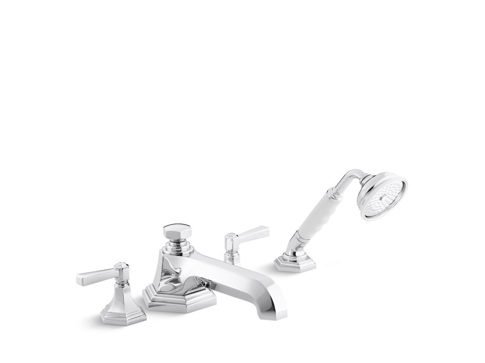 Infused with classic details, the For Town deck-mount bath faucet set with diverter and handshower evokes the elegance of a 1930s Park Avenue apartment. Tailored and functional, this piece will add life to any space.- High-quality solid-brass construction for durability and reliability