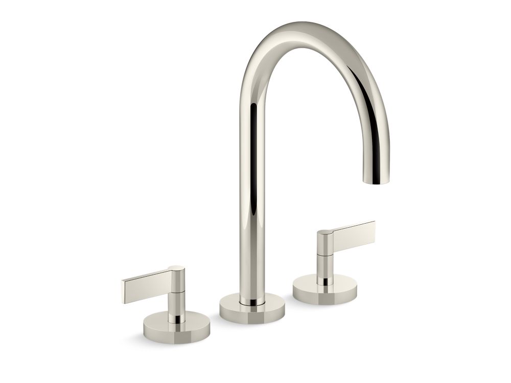 Pure form marries classic elegance in this deck-mount bathtub faucet from the One collection. Designed for the minimalist bathroom, this premium faucet pairs contemporary lever handles and a sleek, high-arch gooseneck spout. Discover the simple design of this modern bath faucet set in an array of luxurious finishes.- High-quality solid-brass construction for durability and reliability