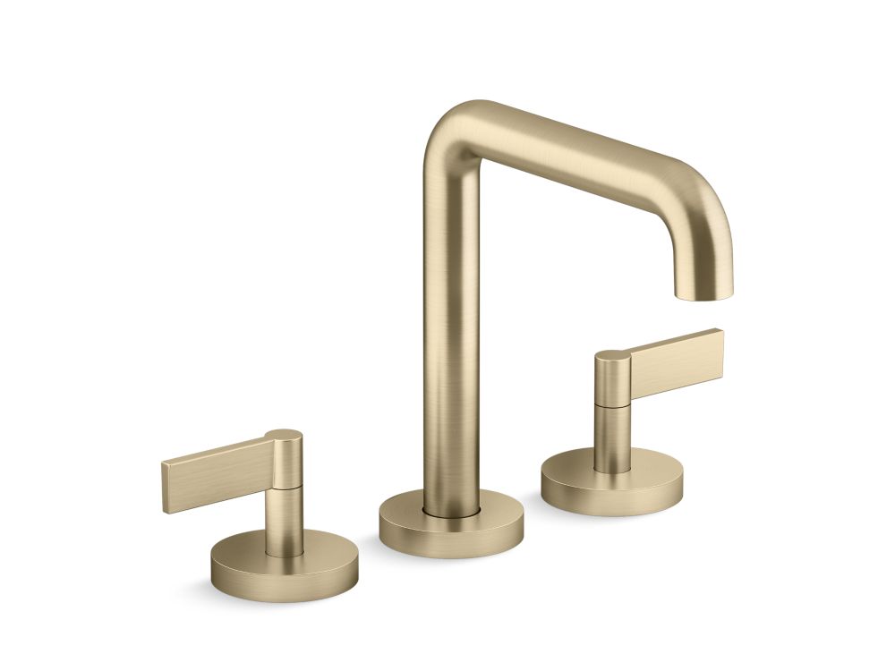 Pure form marries classic elegance in this deck-mount bathtub faucet from the One collection. Designed for the minimalist bathroom, this premium widespread faucet pairs contemporary lever handles and a tall, sleek spout with rounded angles. Discover the simple design of this modern bath faucet set in an array of luxurious finishes.- High-quality solid-brass construction for durability and reliability