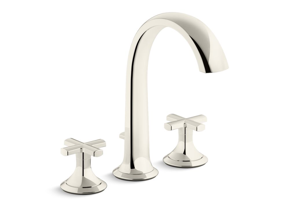 Deck-Mount Bath Faucet with Diverter, Cross Handles