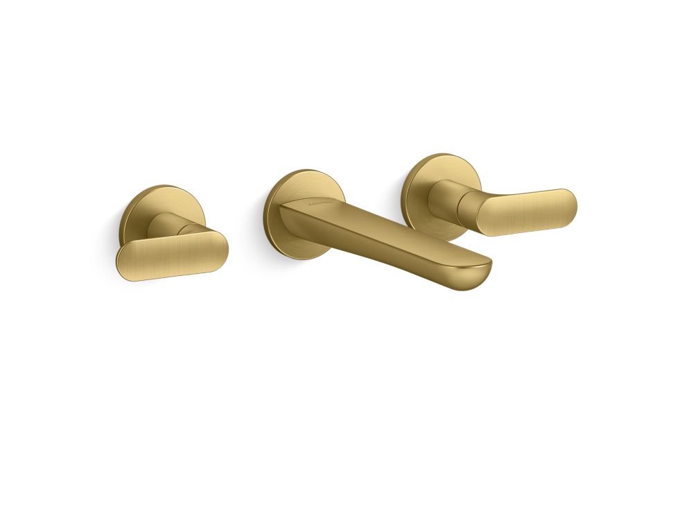 American contemporary form is embodied in the streamlined simplicity of the 002™ brassware collection, starring organic round edges and uninterrupted clean lines. This premium wall mount widespread bathroom sink faucet with sleek lever handles will elevate your contemporary bathroom setting—both in design and innovation. It features a custom-engineered aerator, creating a splash-free unique water stream. With a distinct range of luxurious finishes and state-of-the art design, the 002™ bathroom collection offers a variety of coordinating options to suit your personal style.- High-quality metal construction for durability and reliability
