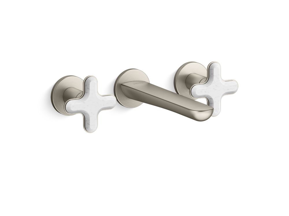 American contemporary form is embodied in the streamlined simplicity of the 002™ brassware collection, starring organic round edges and uninterrupted clean lines. This premium wall mount widespread bathroom sink faucet with upgraded cross handles will elevate your contemporary or transitional bathroom setting in both design and innovation. With a custom-engineered aerator, the user will experience a unique, artistic and splash-free water stream. Adorned with jewelry inspired handles featuring exquisite hand-crafted Italian Statuary White Carrara, one of three meticulously curated natural stone offerings, and the availability in five luxurious finishes, the 002™ bathroom collection allows you to create a faucet pairing that suits your personal style.- High-quality metal construction for durability and reliability