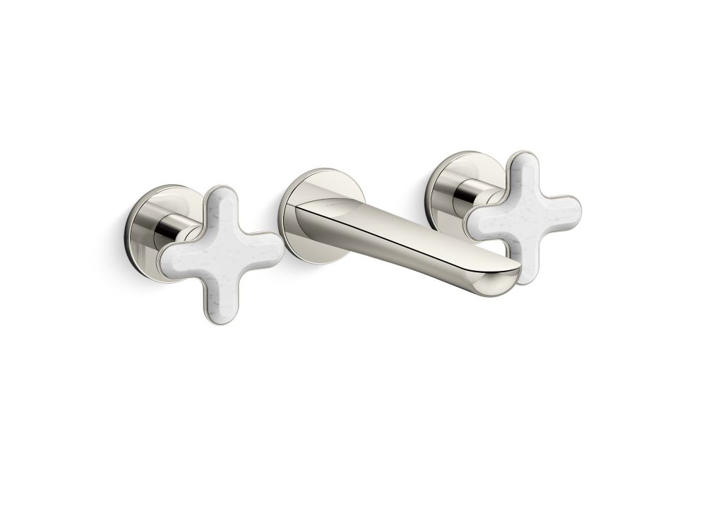 American contemporary form is embodied in the streamlined simplicity of the 002™ brassware collection, starring organic round edges and uninterrupted clean lines. This premium wall mount widespread bathroom sink faucet with upgraded cross handles will elevate your contemporary or transitional bathroom setting in both design and innovation. With a custom-engineered aerator, the user will experience a unique, artistic and splash-free water stream. Adorned with jewelry inspired handles featuring exquisite hand-crafted Italian Statuary White Carrara, one of three meticulously curated natural stone offerings, and the availability in five luxurious finishes, the 002™ bathroom collection allows you to create a faucet pairing that suits your personal style.- High-quality metal construction for durability and reliability