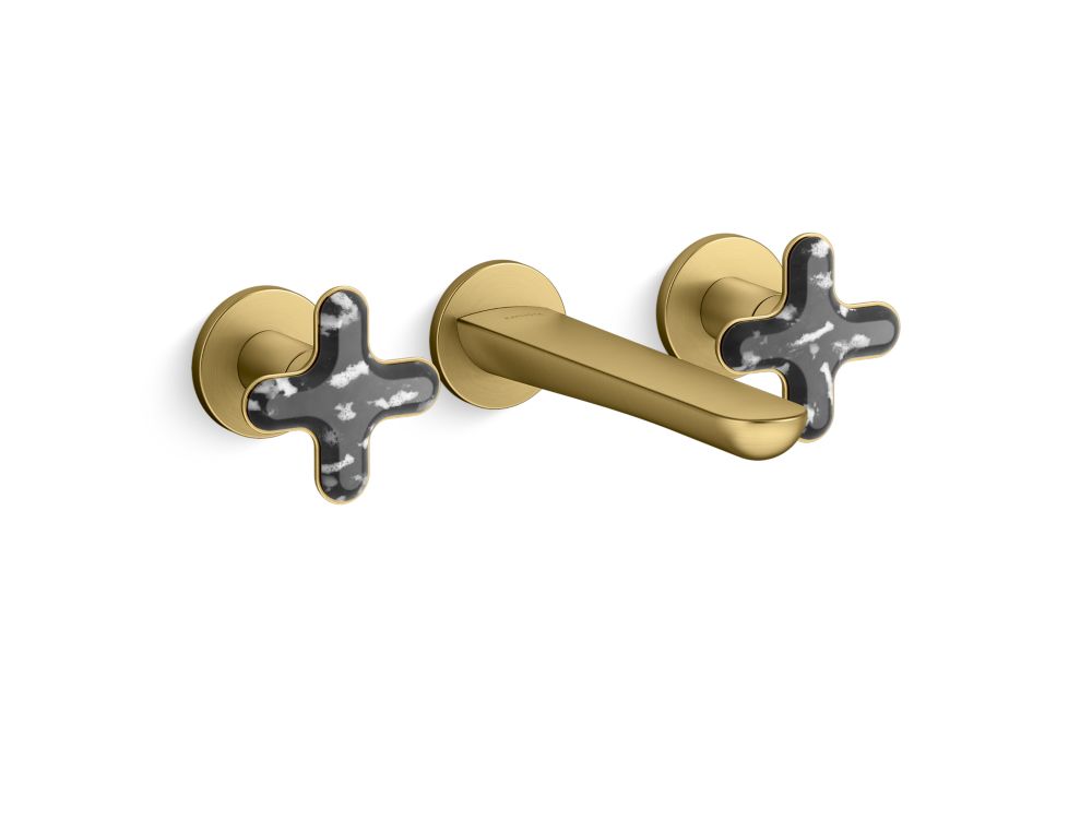 American contemporary form is embodied in the streamlined simplicity of the 002™ brassware collection, starring organic round edges and uninterrupted clean lines. This premium wall mount widespread bathroom sink faucet with upgraded cross handles will elevate your contemporary or transitional bathroom setting in both design and innovation. With a custom-engineered aerator, the user will experience a unique, artistic and splash-free water stream. Adorned with jewelry inspired handles featuring exquisite hand-crafted Italian Zebra Jasper, one of three meticulously curated natural stone offerings, and the availability in five luxurious finishes, the 002™ bathroom collection allows you to create a faucet pairing that suits your personal style.- High-quality metal construction for durability and reliability