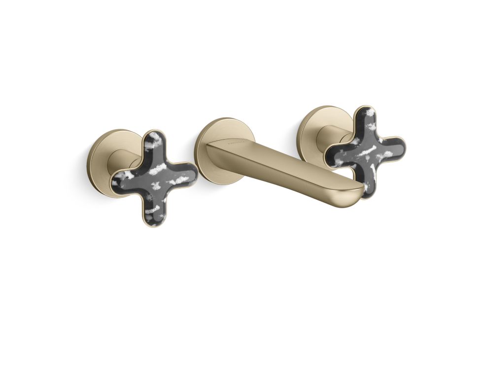 American contemporary form is embodied in the streamlined simplicity of the 002™ brassware collection, starring organic round edges and uninterrupted clean lines. This premium wall mount widespread bathroom sink faucet with upgraded cross handles will elevate your contemporary or transitional bathroom setting in both design and innovation. With a custom-engineered aerator, the user will experience a unique, artistic and splash-free water stream. Adorned with jewelry inspired handles featuring exquisite hand-crafted Italian Zebra Jasper, one of three meticulously curated natural stone offerings, and the availability in five luxurious finishes, the 002™ bathroom collection allows you to create a faucet pairing that suits your personal style.- High-quality metal construction for durability and reliability