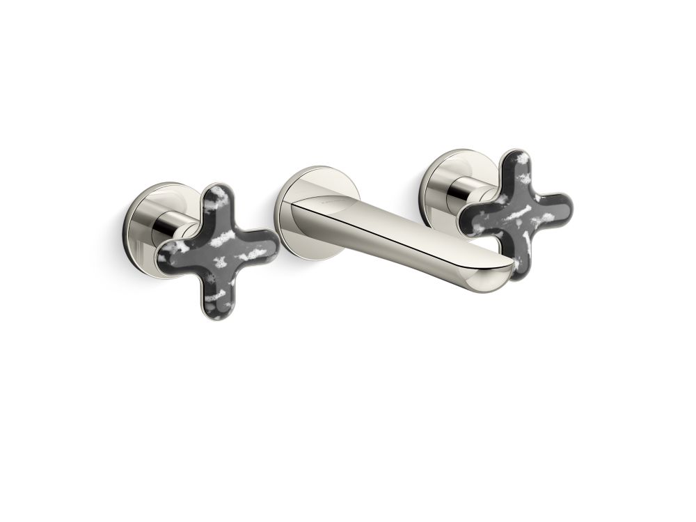 American contemporary form is embodied in the streamlined simplicity of the 002™ brassware collection, starring organic round edges and uninterrupted clean lines. This premium wall mount widespread bathroom sink faucet with upgraded cross handles will elevate your contemporary or transitional bathroom setting in both design and innovation. With a custom-engineered aerator, the user will experience a unique, artistic and splash-free water stream. Adorned with jewelry inspired handles featuring exquisite hand-crafted Italian Zebra Jasper, one of three meticulously curated natural stone offerings, and the availability in five luxurious finishes, the 002™ bathroom collection allows you to create a faucet pairing that suits your personal style.- High-quality metal construction for durability and reliability