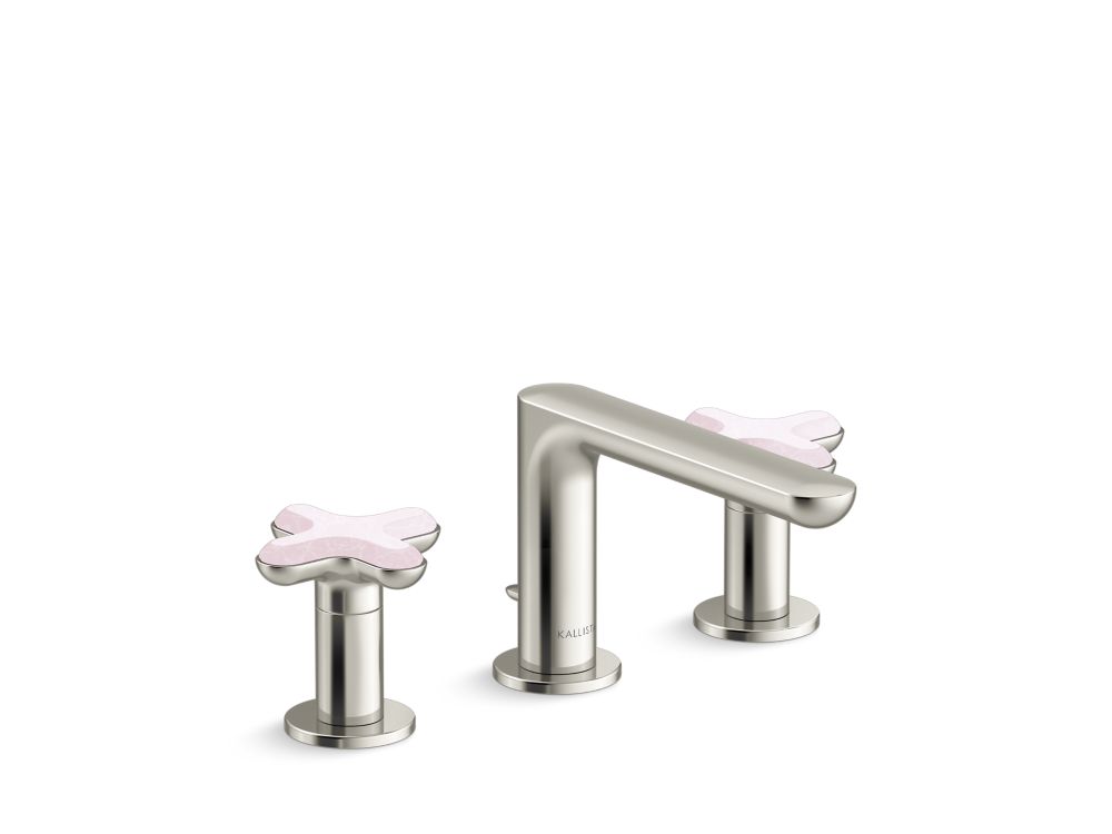 American contemporary form is embodied in the streamlined simplicity of the 002™ brassware collection, starring organic round edges and uninterrupted clean lines. This premium low-profile widespread bathroom sink faucet with decorative cross handles will elevate your contemporary or transitional bathroom setting in both design and innovation. With a custom-engineered aerator, the user will experience a unique, artistic and splash-free water stream. Adorned with jewelry inspired handles featuring exquisite hand-crafted Rose Quartz, one of three meticulously curated natural stone offerings, and the availability in five luxurious finishes, the 002™ bathroom collection allows you to create a faucet pairing that suits your personal style.- High-quality metal construction for durability and reliability