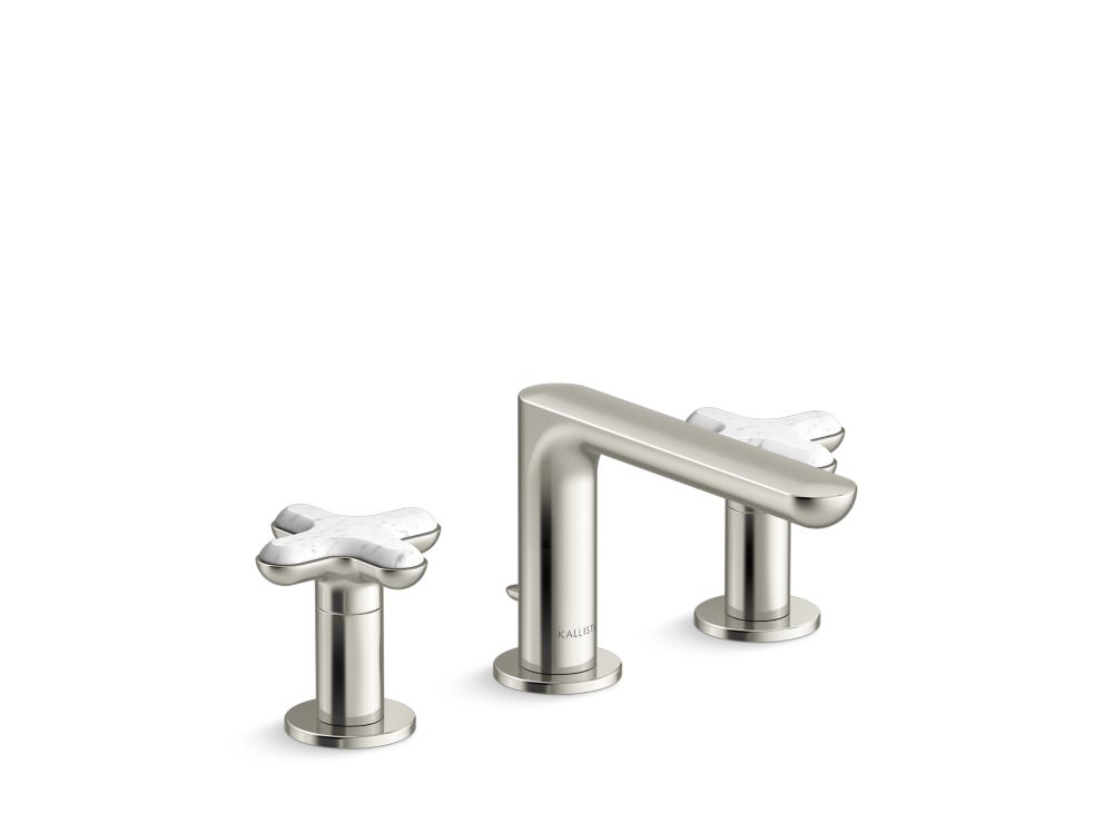 American contemporary form is embodied in the streamlined simplicity of the 002™ brassware collection, starring organic round edges and uninterrupted clean lines. This premium low-profile widespread bathroom sink faucet with decorative cross handles will elevate your contemporary or transitional bathroom setting in both design and innovation. With a custom-engineered aerator, the user will experience a unique, artistic and splash-free water stream. Adorned with jewelry inspired handles featuring exquisite hand-crafted Italian Statuary White Carrara, one of three meticulously curated natural stone offerings, and the availability in five luxurious finishes, the 002™ bathroom collection allows you to create a faucet pairing that suits your personal style.- High-quality metal construction for durability and reliability