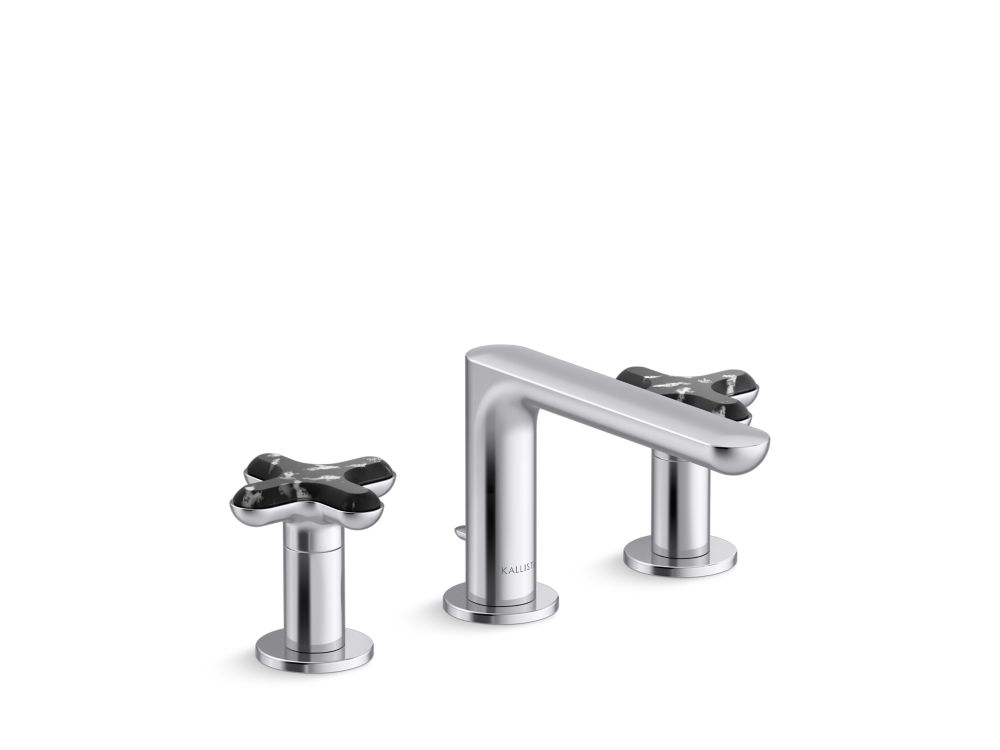 American contemporary form is embodied in the streamlined simplicity of the 002™ brassware collection, starring organic round edges and uninterrupted clean lines. This premium low-profile widespread bathroom sink faucet with decorative cross handles will elevate your contemporary or transitional bathroom setting in both design and innovation. With a custom-engineered aerator, the user will experience a unique, artistic and splash-free water stream. Adorned with jewelry inspired handles featuring exquisite hand-crafted Italian Zebra Jasper, one of three meticulously curated natural stone offerings, and the availability in five luxurious finishes, the 002™ bathroom collection allows you to create a faucet pairing that suits your personal style.- High-quality metal construction for durability and reliability