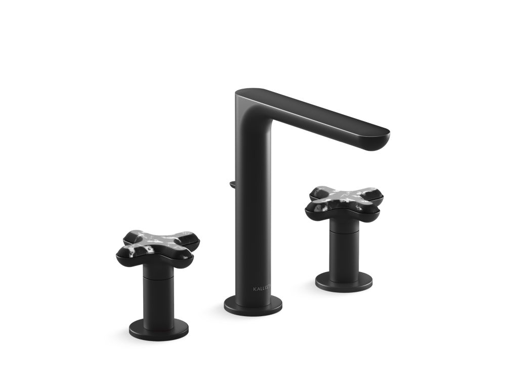 American contemporary form is embodied in the streamlined simplicity of the 002™ brassware collection, starring organic round edges and uninterrupted clean lines. This premium tall widespread bathroom sink faucet with upgraded cross handles will elevate your contemporary or transitional bathroom setting in both design and innovation. With a custom-engineered aerator, the user will experience a unique, artistic and splash-free water stream. Adorned with jewelry inspired handles featuring exquisite hand-crafted Italian Zebra Jasper, one of three meticulously curated natural stone offerings, and the availability in five luxurious finishes, the 002™ bathroom collection allows you to create a faucet pairing that suits your personal style.- High-quality metal construction for durability and reliability