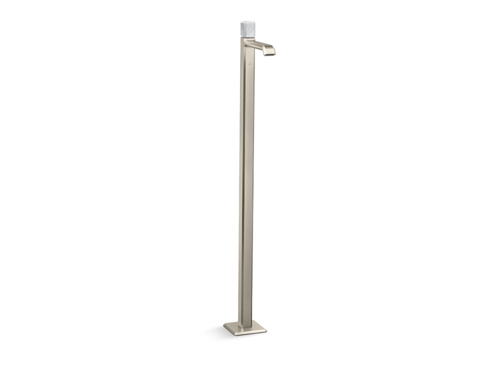 Showcasing Kallista’s first soft square profile intricately faceted in the likeness of a gem stone, the Bezel™ collection features an Art Deco-inspired silhouette, elevated natural stone adornments and a precision cut contour tempered by classical composition. The result is a luxurious, versatile and classic aesthetic, developed to endure the test of time. Kallista is proud to introduce Bezel™ in partnership with Italian manufacturer CRISTINA Rubinetterie and creative industrial design team Busetti Garuti Redaelli. A distinguishing focal point for the discerning eye, this floormounted single control sink faucet, adorned with a striking Italian statuary White Carrara natural stone handle, is the ultimate statement in both stature and refined detail. Due to the natural properties of the stone, coloring may vary.- High-quality solid-brass construction for durability and reliability