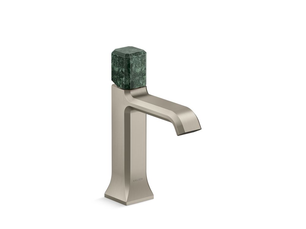 Showcasing Kallista’s first soft square profile intricately faceted in the likeness of a gem stone, the Bezel™ collection features an Art Deco-inspired silhouette, elevated natural stone adornments and a precision cut contour tempered by classical composition. The result is a luxurious, versatile and classic aesthetic, developed to endure the test of time. Kallista is proud to introduce Bezel™ in partnership with Italian manufacturer CRISTINA Rubinetterie and creative industrial design team Busetti Garuti Redaelli. A distinguishing focal point for the discerning eye, this single control sink faucet, adorned with a striking Guatemala natural stone handle, is the ultimate statement in both stature and refined detail. Due to the natural properties of the stone, coloring may vary.- High-quality solid-brass construction for durability and reliability