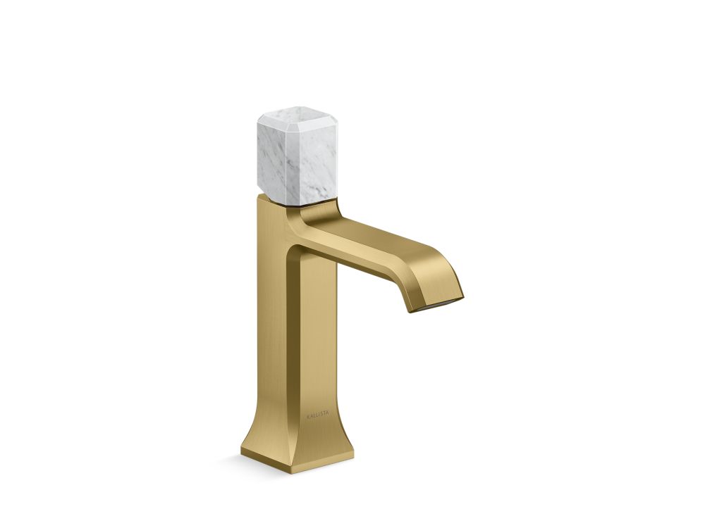 Showcasing Kallista’s first soft square profile intricately faceted in the likeness of a gem stone, the Bezel™ collection features an Art Deco-inspired silhouette, elevated natural stone adornments and a precision cut contour tempered by classical composition. The result is a luxurious, versatile and classic aesthetic, developed to endure the test of time. Kallista is proud to introduce Bezel™ in partnership with Italian manufacturer CRISTINA Rubinetterie and creative industrial design team Busetti Garuti Redaelli. A distinguishing focal point for the discerning eye, this single control sink faucet, adorned with a striking Italian statuary White Carrara natural stone handle, is the ultimate statement in both stature and refined detail. Due to the natural properties of the stone, coloring may vary.- High-quality solid-brass construction for durability and reliability