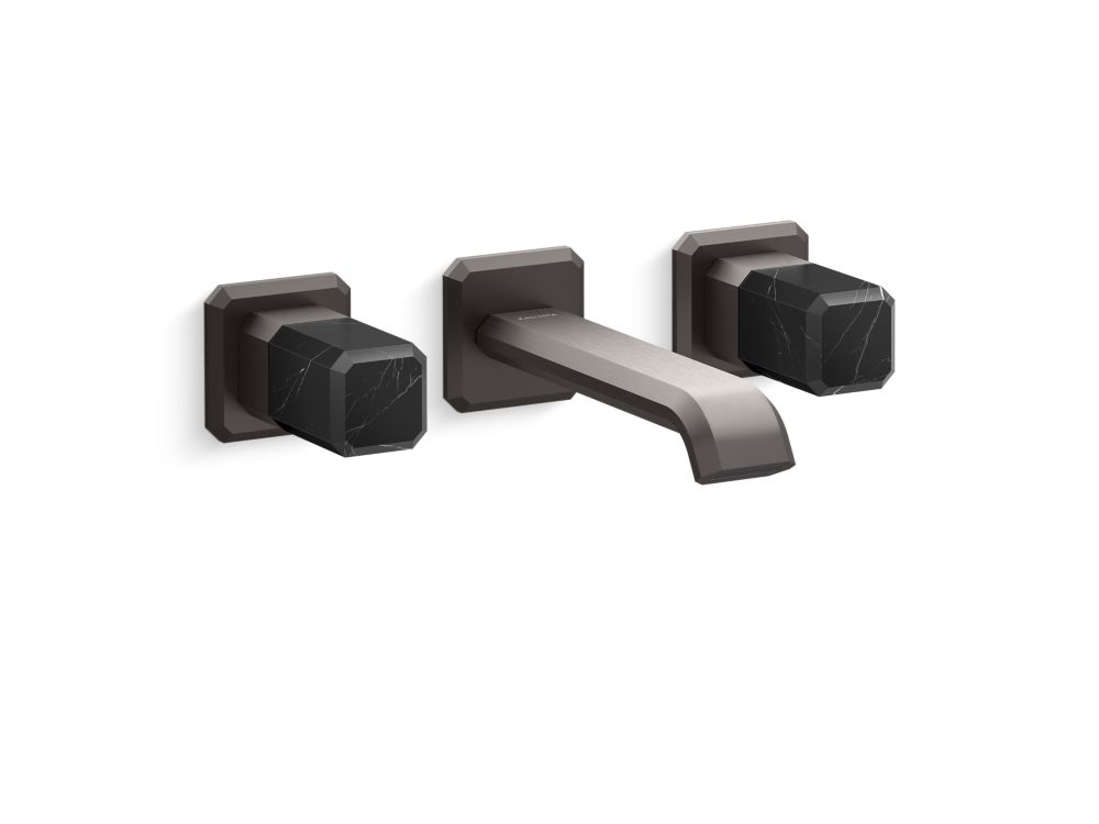 Wall Mount Widespread Sink Faucet, Nero Marquina Handles