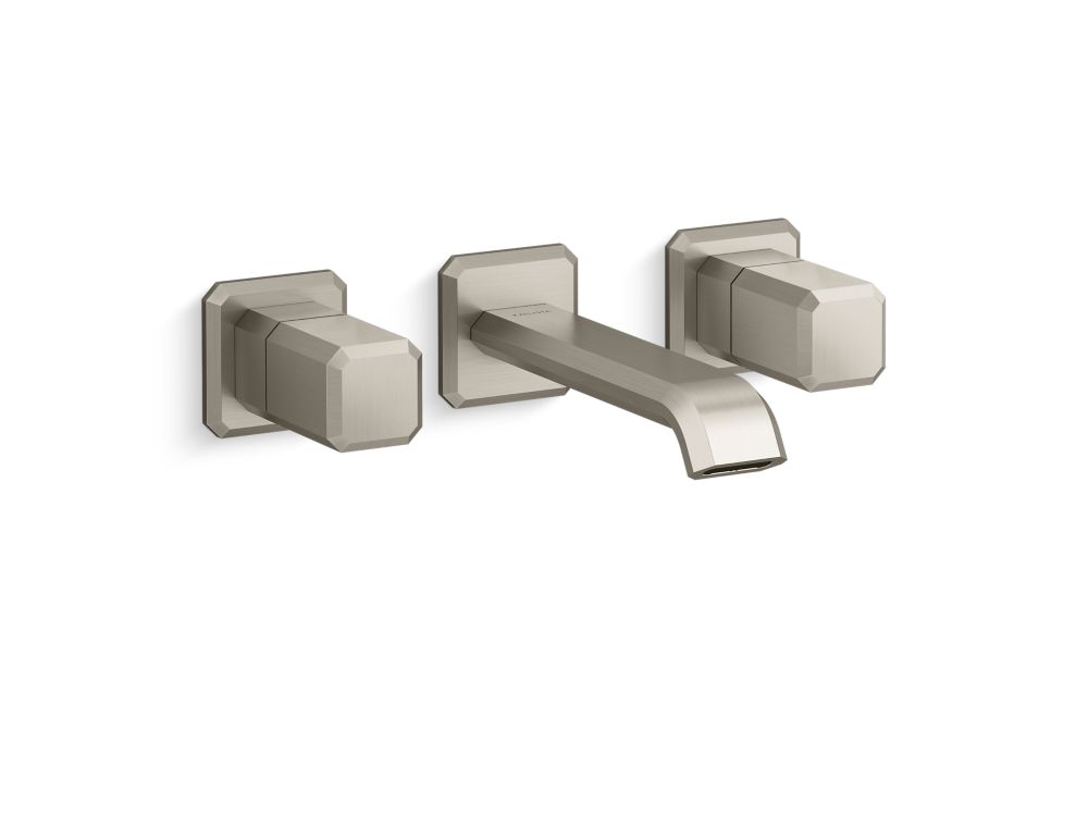 Showcasing Kallista’s first soft square profile intricately faceted in the likeness of a gem stone, the Bezel™ collection features an Art Deco-inspired silhouette with a precision cut contour tempered by classical composition. The result is a luxurious, versatile and classic aesthetic, developed to endure the test of time. Kallista is proud to introduce Bezel™ in partnership with Italian manufacturer CRISTINA Rubinetterie and creative industrial design team Busetti Garuti Redaelli. A distinguishing focal point for the discerning eye, this wall mounted widespread sink faucet is the ultimate statement in both stature and refined detail.- High-quality solid-brass construction for durability and reliability