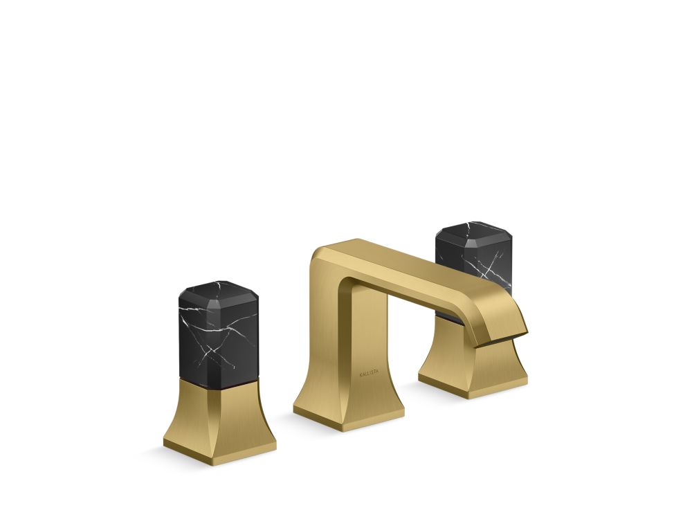 Showcasing Kallista’s first soft square profile intricately faceted in the likeness of a gem stone, the Bezel™ collection features an Art Deco-inspired silhouette, elevated natural stone adornments and a precision cut contour tempered by classical composition. The result is a luxurious, versatile and classic aesthetic, developed to endure the test of time. Kallista is proud to introduce Bezel™ in partnership with Italian manufacturer CRISTINA Rubinetterie and creative industrial design team Busetti Garuti Redaelli. A distinguishing focal point for the discerning eye, this widespread sink faucet adorned with Italian Nero Marquina natural stone handles, is the ultimate statement in both stature and refined detail. Due to the natural properties of the stone, coloring may vary.- High-quality solid-brass construction for durability and reliability