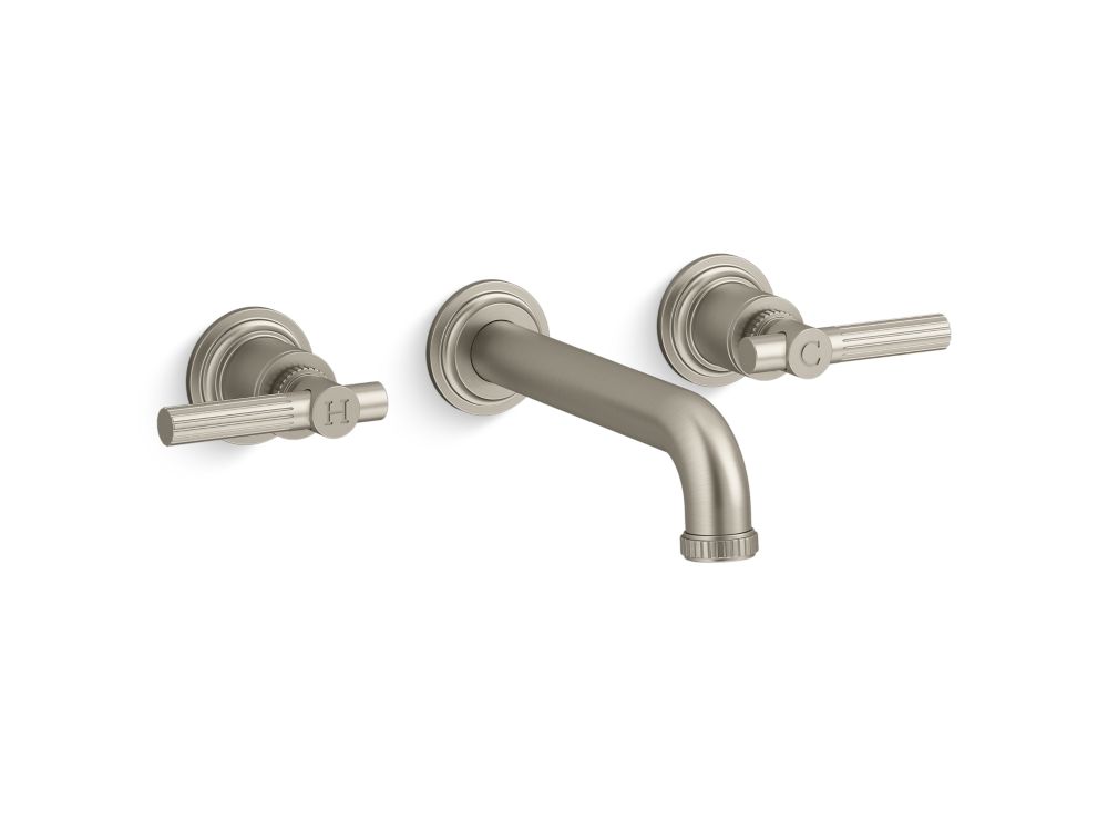 Explore intricate detailing and captivating handcraft that harkens back to the elegance and glamour of the twentieth century. The Central Park West by Robert A.M. Stern Architects wall-mount bathroom sink faucet showcases fluted lever handles and knurled spout edging, delivering standout style within the traditional or transitional bathroom setting.