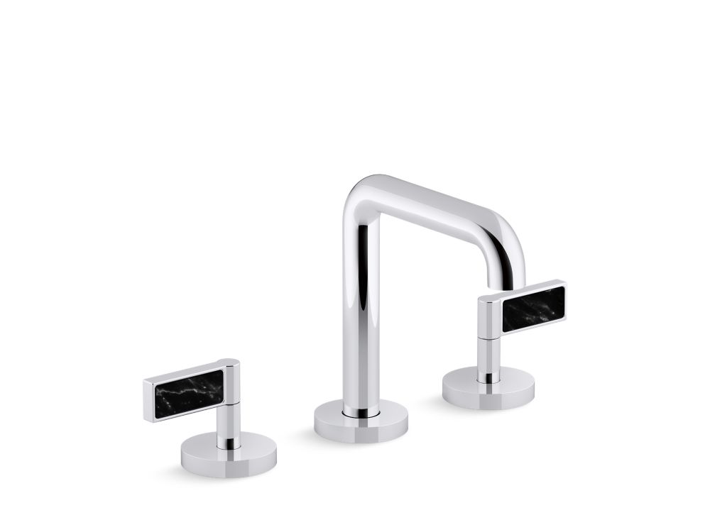 With its tall, sleek form and distinctive details, the premium bathroom sink faucet by the One Decorative collection makes a statement in any modern bathroom. Lever handles with Nero Marquina marble perfectly complement the faucet's minimalist beauty. Featuring a rich black hue with delicate white patterning, Nero Marquina has garnered international appeal for its contemporary sense of urban luxury.- High-quality solid-brass construction for durability and reliability