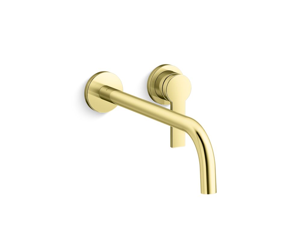 Pure form marries artful elegance in this wall-mount single-control bathroom sink faucet from the One collection. Designed for the modern or transitional bathroom, this premium 1.2 gpm sink faucet pairs a sleek, elongated spout and contemporary lever handle for a minimalist aesthetic. Available in an array of luxurious finishes.- High-quality solid-brass construction for durability and reliability