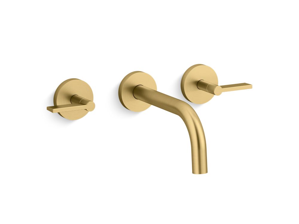 Pure form marries classic elegance in the One collection wall-mount bathroom sink faucet. Featuring lever handles and a sleek, elongated spout, the 1.2 gpm sink faucet delivers minimalist beauty to the transitional or contemporary bathroom. Available in a wide range of premium finishes.- High-quality solid-brass construction for durability and reliability