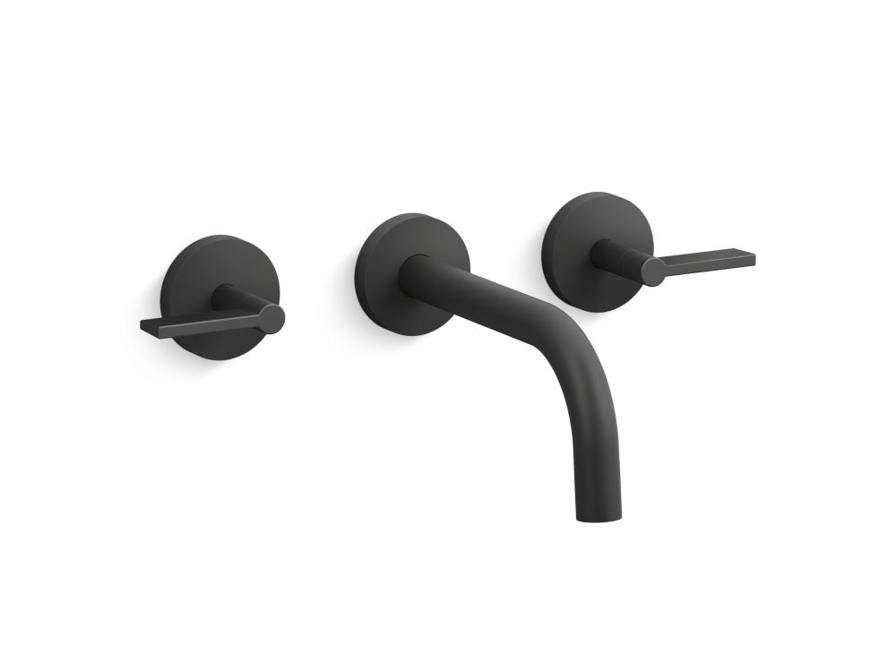Pure form marries classic elegance in the One collection wall-mount bathroom sink faucet. Featuring lever handles and a sleek, elongated spout, the 1.2 gpm sink faucet delivers minimalist beauty to the transitional or contemporary bathroom. Available in a wide range of premium finishes.- High-quality solid-brass construction for durability and reliability