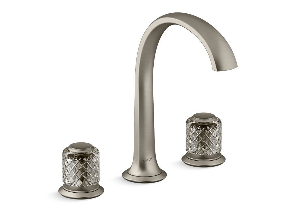 Accented with luminous crisscross-etched flannel grey crystal from esteemed French crystallerie Saint-Louis, the strikingly approachable Script Decorative sink faucet with knob handles and arch spout offers unparalleled elegance, artisan craftsmanship, and exquisite materials to elevate your everyday use. The decadent widespread faucet was designed to make a statement in any traditional or transitional bathroom space.