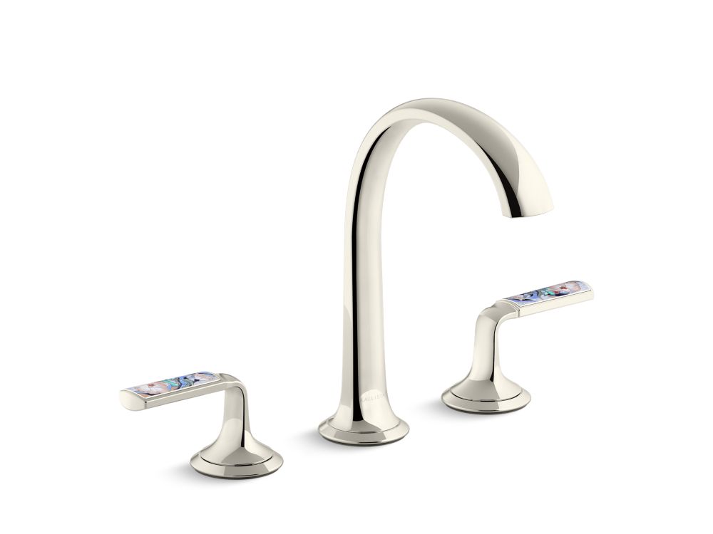 The Script Decorative collection features hand-painted enamel handles etched Saint-Louis crystal knobs and porcelain handles. The enamel handles are reminiscent of family detailed cloisonné jewelry made popular in the 19th century Victorian era. The enameling technique creates the pieces' vibrant colors and glossy finish. The piece is fired four times to ensure strength and durability. The detailed crisscross pattern in the porcelain handles draws inspiration from micro facets commonly used by artisans that expressed themselves through crafting furnishings, fashion and jewelry. Each faucet in this collection is available with an array of decorative upgrade options and finishes to bring distinct beauty to your space.