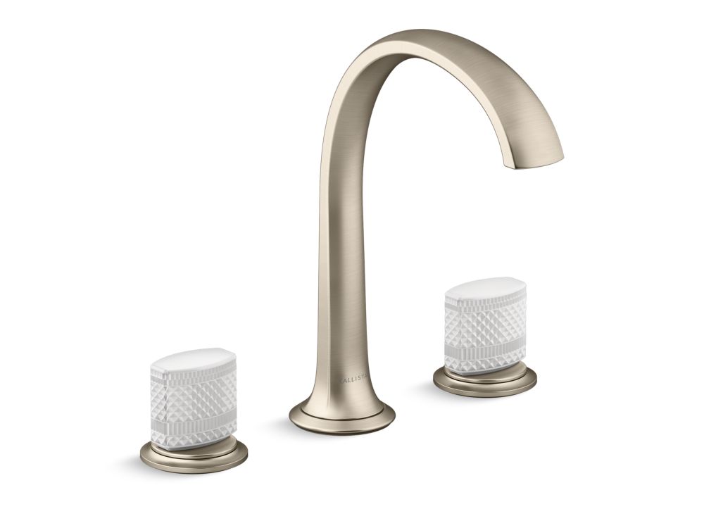 Bringing unique style to your bathroom space, the Script Decorative sink faucet with arch spout and knob handles offers a sense of elegance while maintaining artistic integrity. Sleek White Porcelain knob handles feature an intricate crisscross pattern, inspired by artisan microfacets in craft furnishings, fashion, and jewelry. Elevate your everyday with this luxurious widespread bathroom sink faucet.- Handcrafted porcelain handles