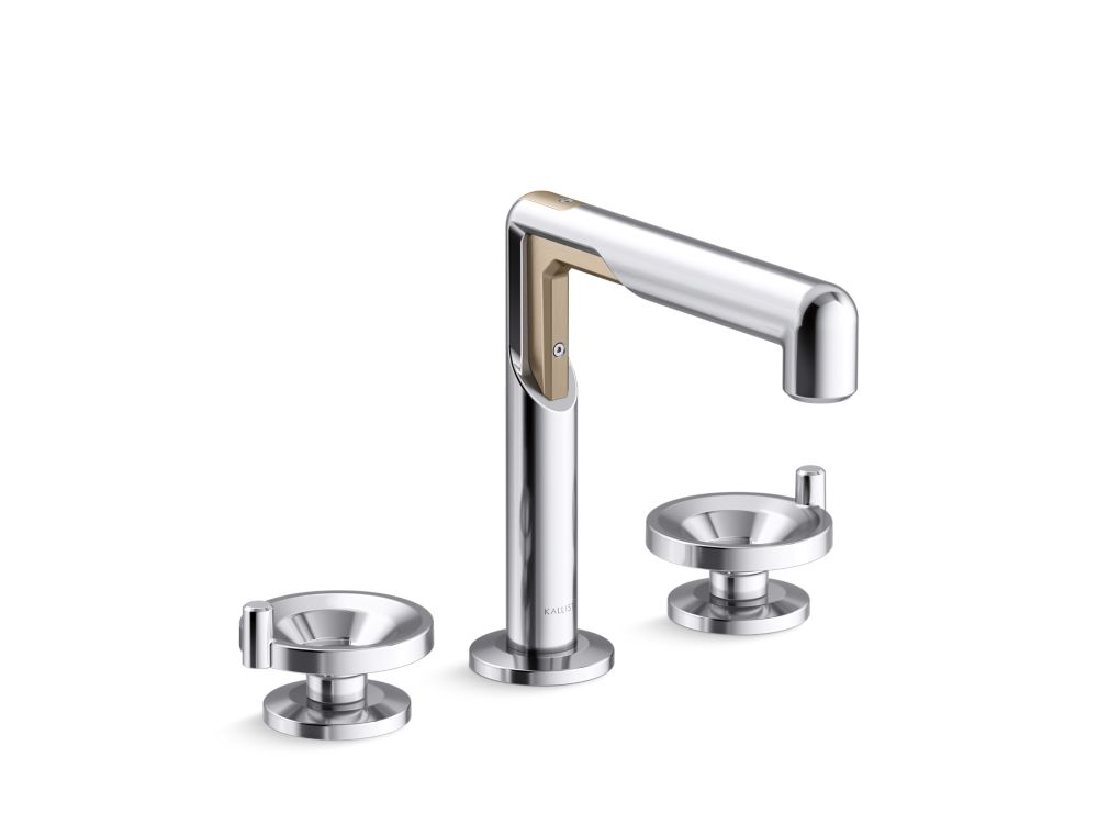 Vice introduces a range of bathroom faucet configurations defined by exposed mechanical detailing, including hex-head screws, chamfered edges, and recessed fastener seats. Highlighting elements typically reserved for fine instruments, Vice’s custom-insert geometry ensures perfect alignment across its spouts and handles, reinforcing the collection’s sculptural, transitional identity. The Vice widespread sink faucet features the wheel architectural handle profile. A signature open-disk form reveals directional indicators cast directly into the surface. The low-profile silhouette offers ergonomic performance while maintaining a grounded presence on the wall or counter. Inspired by control wheels and fittings, the Vice Wheel Handle reinterprets utilitarian hardware through a refined lens, balancing tactile function with sculptural elegance.- High-quality solid metal construction for durability and reliability