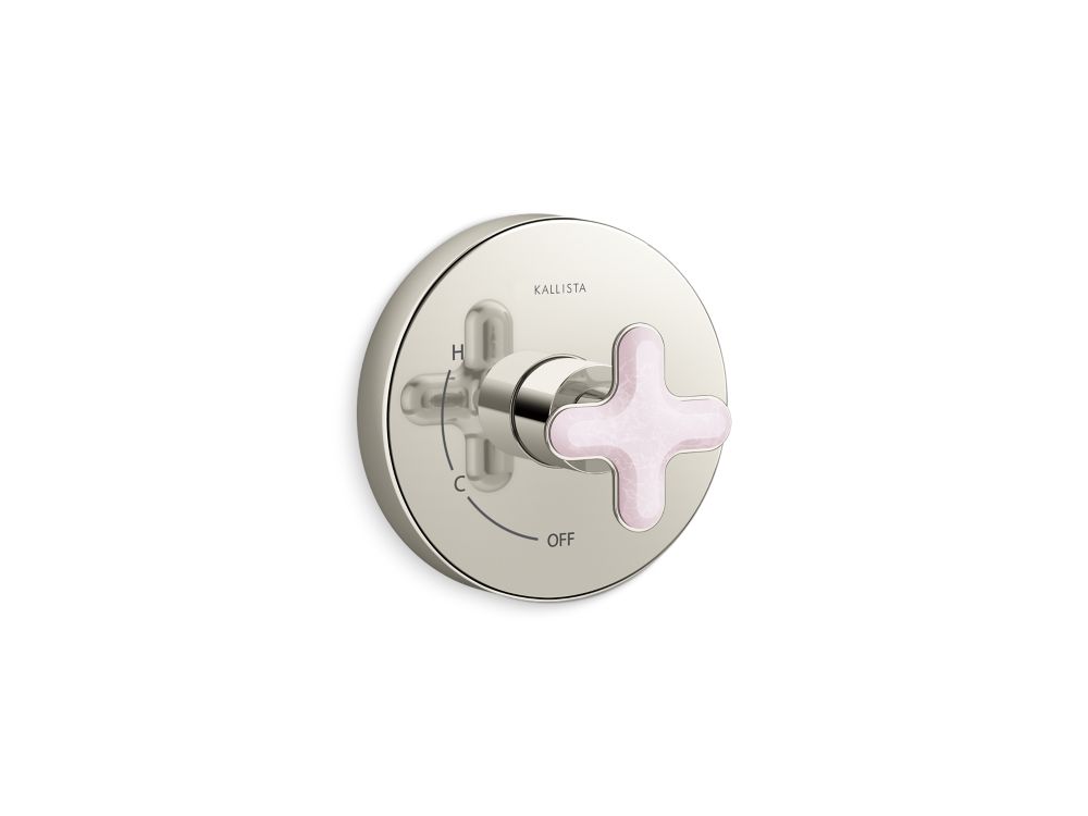 American contemporary form is embodied in the streamlined simplicity of the 002™ brassware collection, starring organic round edges and uninterrupted clean lines. This premium Pressure Balance single control shower trim with upgraded cross handle will elevate your contemporary or transitional bathroom setting. Adorned with a jewelry inspired handle featuring exquisite hand-crafted Rose Quartz, one of three meticulously curated natural stone offerings, and the availability in five luxurious finishes, the 002™ bathroom collection allows you to create a faucet pairing that suits your personal style.- High-quality metal construction for durability and reliability