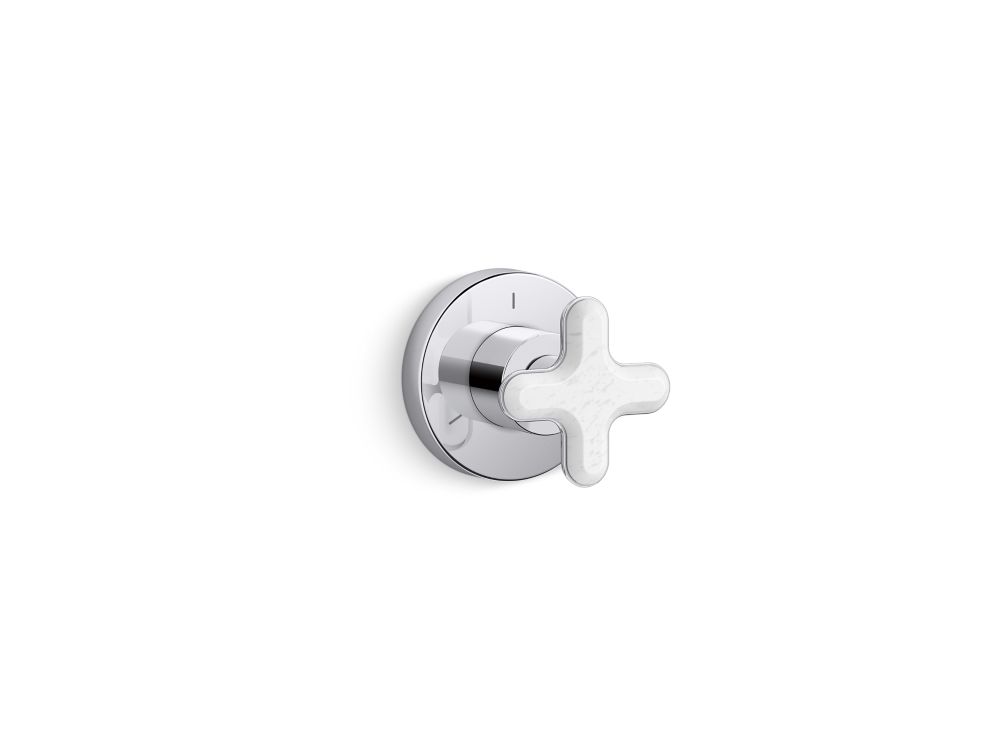 American contemporary form is embodied in the streamlined simplicity of the 002™ brassware collection, starring organic round edges and uninterrupted clean lines. This premium Transfer shower trim with upgraded cross handle will elevate your contemporary or transitional bathroom setting. Adorned with a jewelry inspired handle featuring exquisite hand-crafted Italian Statuary White Carrara, one of three meticulously curated natural stone offerings, and the availability in five luxurious finishes, the 002™ bathroom collection allows you to create a faucet pairing that suits your personal style.- High-quality metal construction for durability and reliability