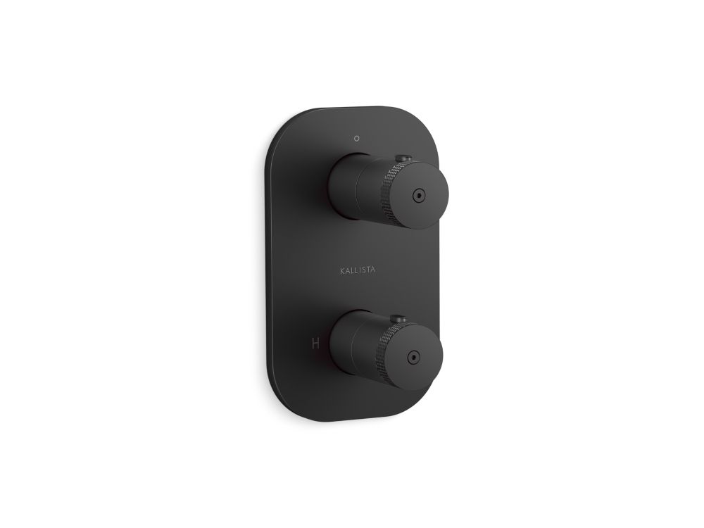 Modern American style meets sleek European form in the all-brass Aileron™ collection. Minimalist lines, distinctive knurling texture and handcrafted character make this series suitable for any contemporary or transitional environment. Paying homage to aeronautical design, Aileron™ features thoughtful details including a slender tube spout, winged handle set, and finial-adorned levers. Kallista is proud to introduce Aileron™ in partnership with Italian manufacturer CRISTINA Rubinetterie and creative industrial design team Silvana Angeletti and Daniele Ruzza. As a declaration in American Contemporary design, this Aileron™ stacked thermostatic showering trim with single outlet control is a captivating addition to any modern bathroom aesthetic.- High-quality solid-brass construction for durability and reliability