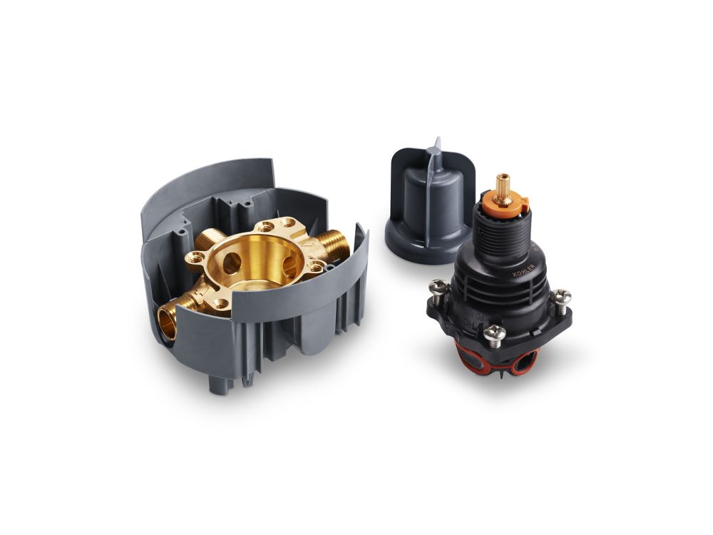 Using innovative technology, the Foundations by KALLISTA universal thermostatic valve system with integrated volume control maintains precise temperature control with an exact high-temperature limit for added safety and showering comfort. Once installed, pair this valve system with your favorite KALLISTA trim for optimal performance and a luxurious shower experience from the inside out.- Brass valve body