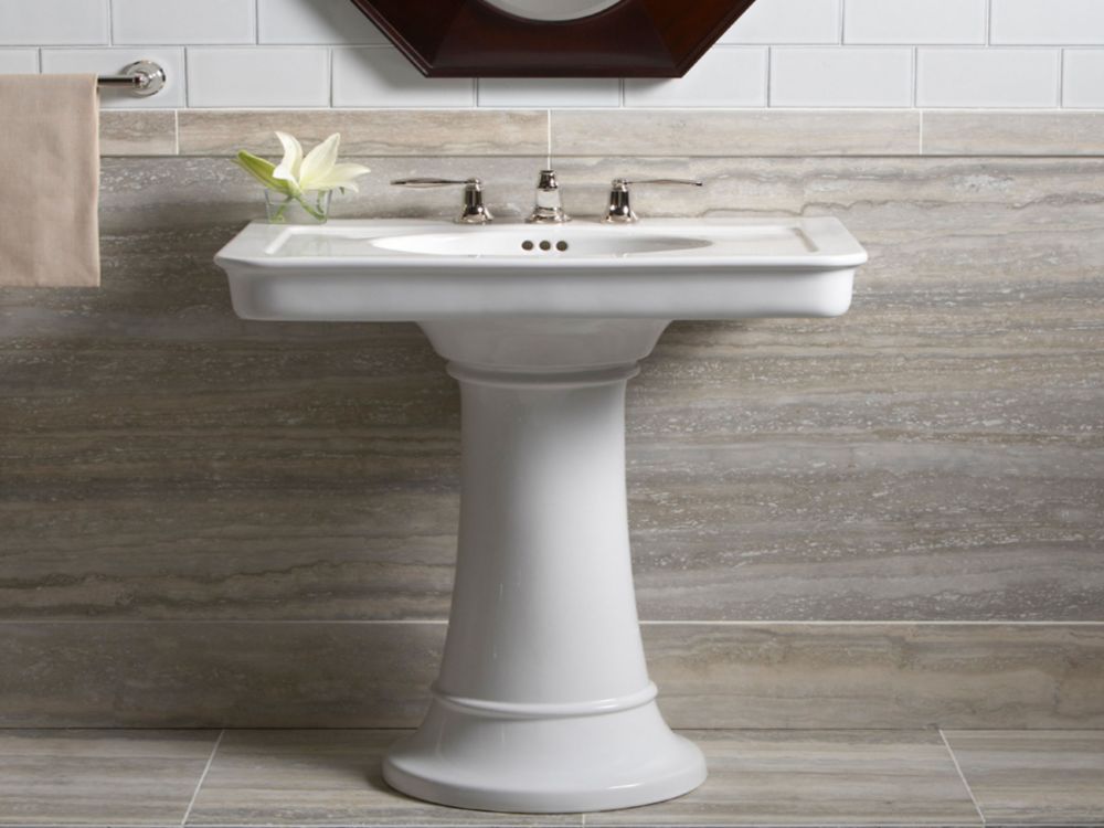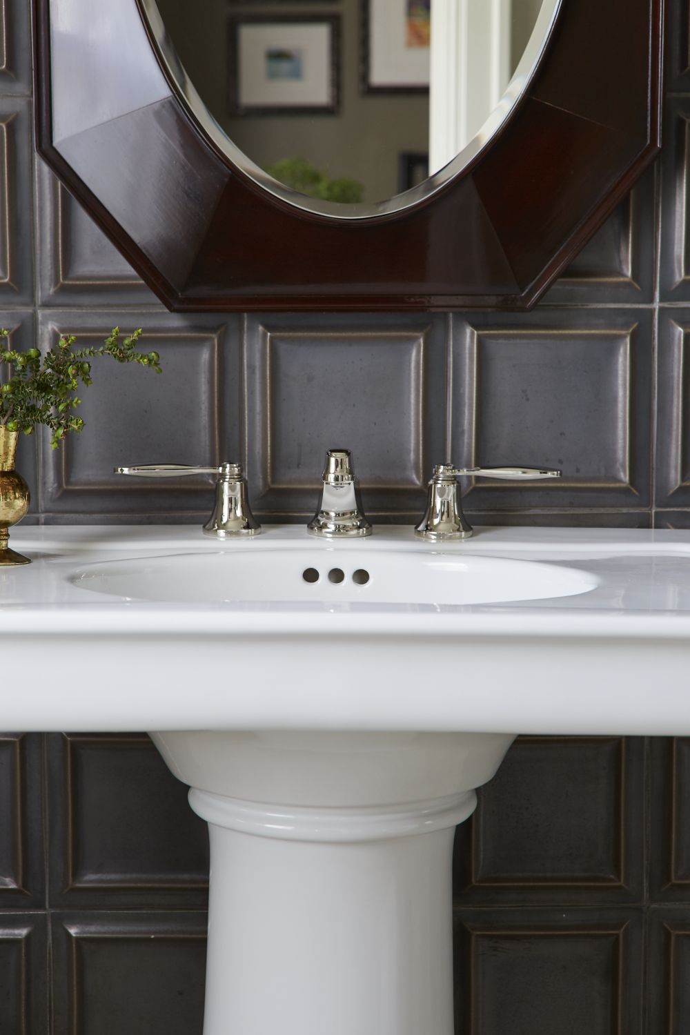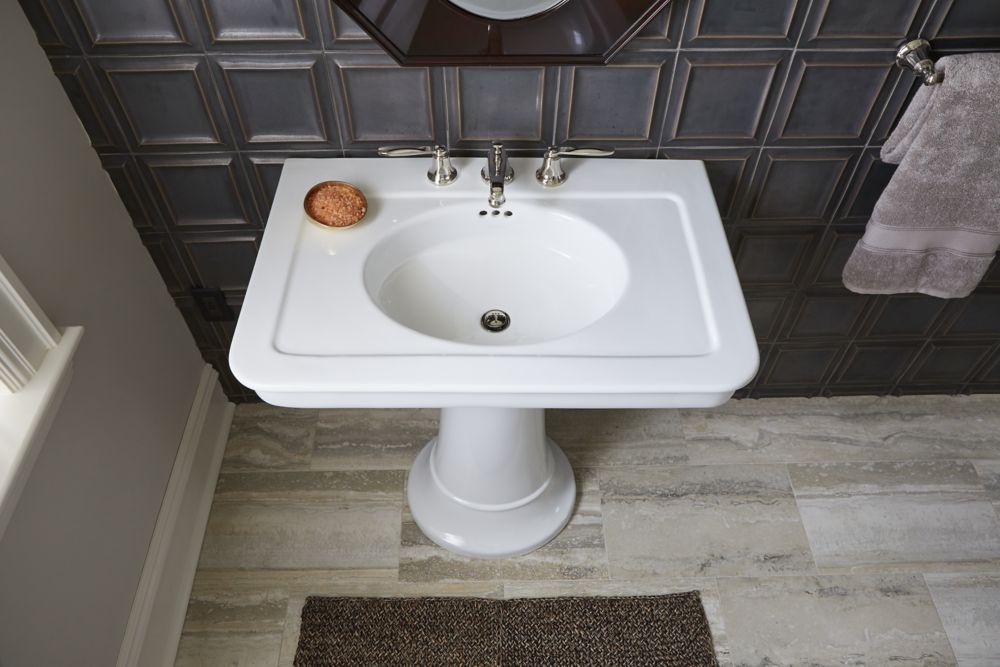 With its sleek form and clean lines, the Tuxedo pedestal sink by Barbara Barry will add chic sensibility to any bathroom space.- Constructed for 8" (203 mm) widespread sink faucet installation