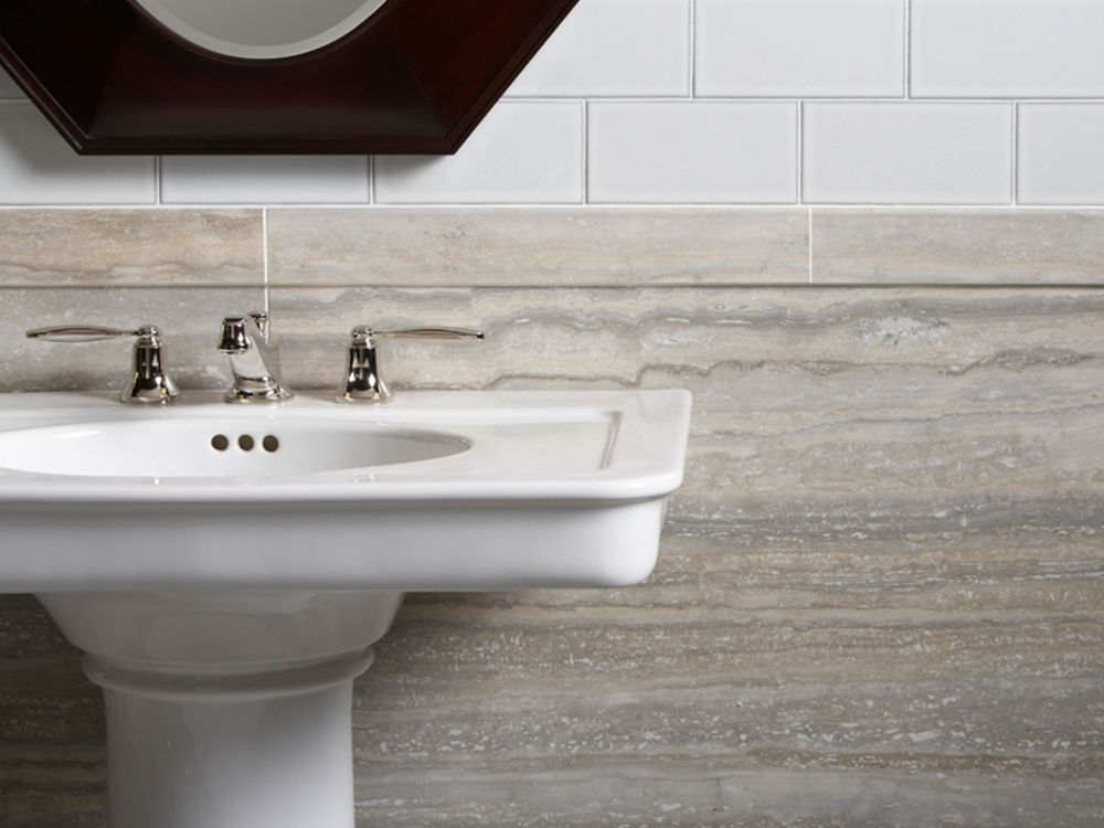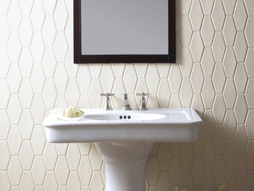 With its sleek form and clean lines, the Tuxedo pedestal sink by Barbara Barry will add chic sensibility to any bathroom space.