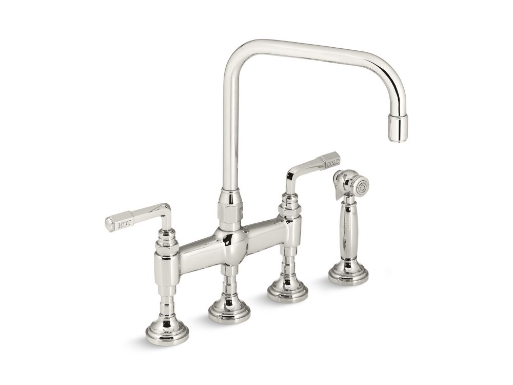 Timeless and classic, the For Town kitchen faucet with sidespray evokes the elegance of a 1930s Park Avenue apartment and complements a variety of kitchen environments.- High-quality solid-brass construction for durability and reliability