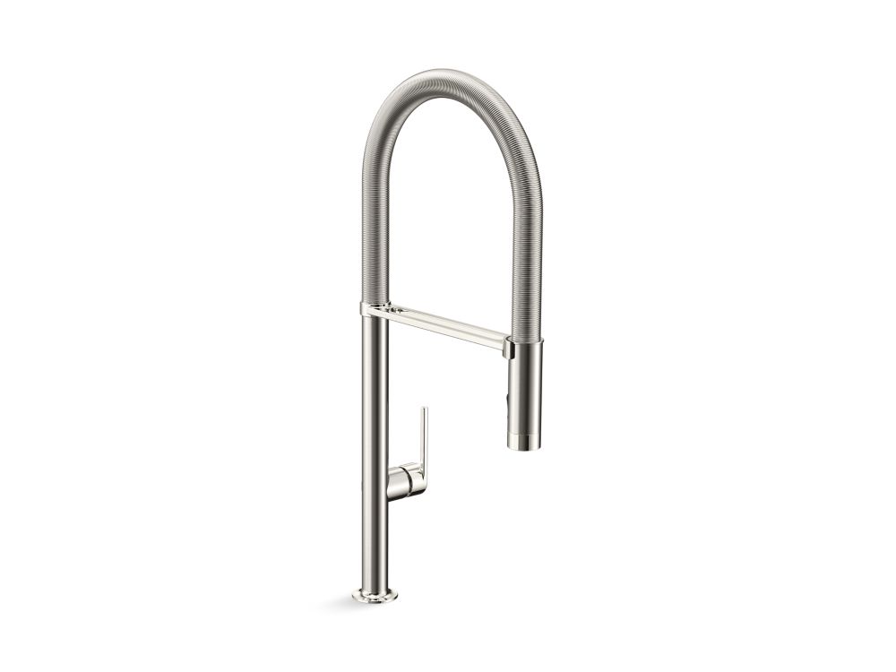 Designed to delight both novice and kitchen connoisseur, the Juxtapose by Mick De Giulio Semi-Professional Faucet brings elegant design and exceptional performance to home chefs. With its gracefully arching spout and exposed spring for outstanding range, Juxtapose is the perfect addition to contemporary kitchen designs.- A selection of products within this collection is in stock and ready to ship. Please visit kallista.com/resources#ReadyToShip for the complete list of Ready-to-Ship products and finishes