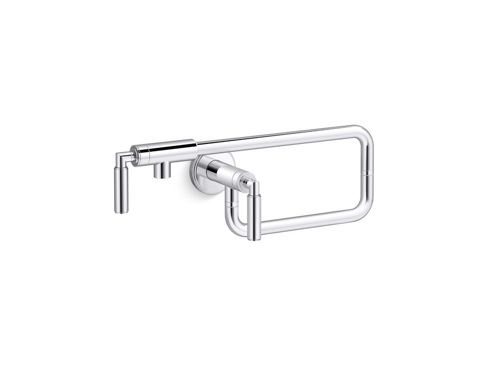 Featuring a clean, understated design, the Laura Kirar wall-mount pot filler is the perfect addition to any transitional kitchen setting. The Vir Stil and Vir Stil Minimal kitchen collections feature pared-down Bauhaus-inspired modern classics designed by acclaimed artist and designer Laura Kirar. Sharing architectural inspiration – single controls, lever handles and stepped escutcheons – the pot filler explores tubular shapes and smooth details, distilling the aesthetic down to its essence. Here, a purity of form serves to underscore luxurious materials and rich finishes, revealing their intention and elevating their impact. Vir Stil and Vir Stil Minimal collections are intended for full kitchen specification, including pull-down faucet, bar/entertainment faucet and coordinating Laura Kirar pot filler. Vir Stil and Vir Stil Minimal are also full bathroom collections including sink and tub faucets, floor-mounted tub fillers, shower fixtures and accessories.- High-quality solid metal construction for durability and reliability