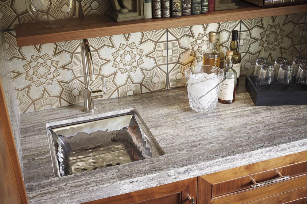With a shimmering distressed finish and hammered countenance, the Bacifiore bar sink by Mick De Giulio is one piece that's built to impress. Whether placed in a wet bar or as the centerpiece of your kitchen island, this finely crafted 16-gauge hammered stainless steel sink is as durable as it is beautiful.